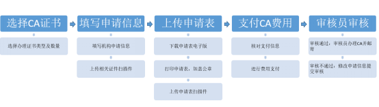 機構注冊完,可以制作單位印章、購買單位證書。首頁提供了個人證書引導圖和單位證書引導圖,可以隨時查看。