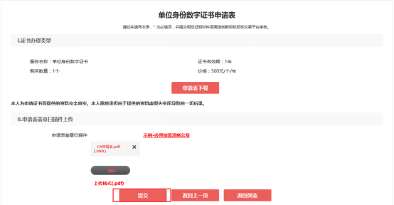 如您需要修改申請表中的內容,請返回重新填寫申請信息。