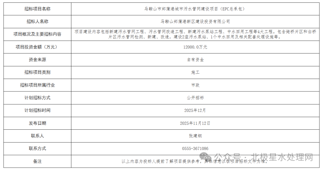 馬鞍山市鄭蒲港城市污水管網(wǎng)建設(shè)項目(EPC總承包)