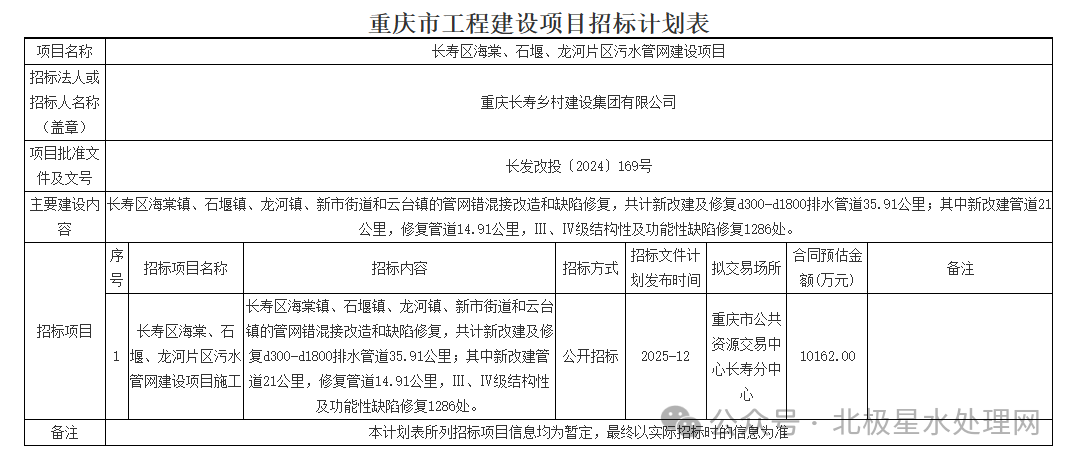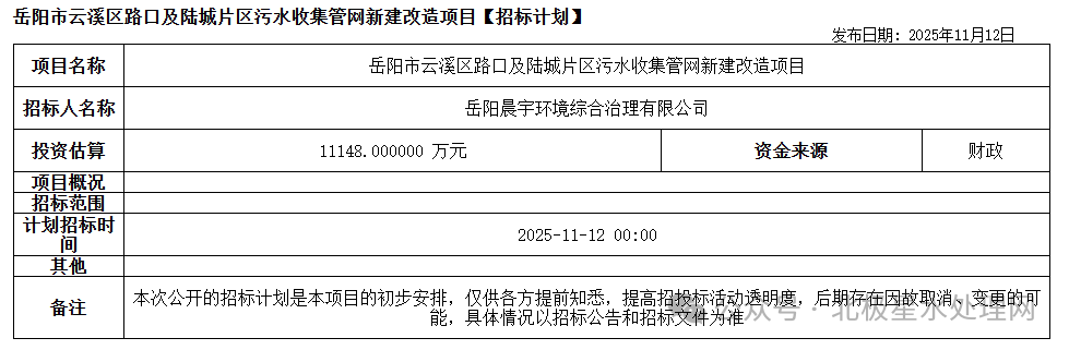 本周全國已有多個省市發(fā)布污水管網(wǎng)建設(shè)、水環(huán)境綜合治理及污水處理廠建設(shè)等項目招標(biāo)計劃。