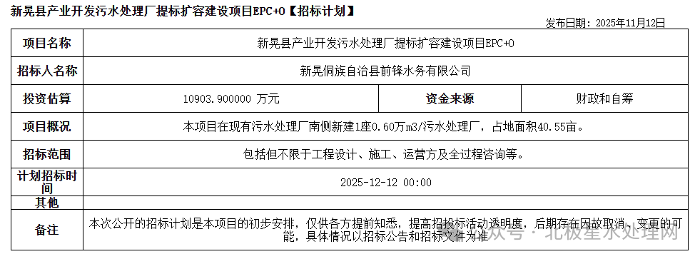 懷化市新晃縣產(chǎn)業(yè)開發(fā)污水處理廠提標(biāo)擴(kuò)容建設(shè)項目EPC+O